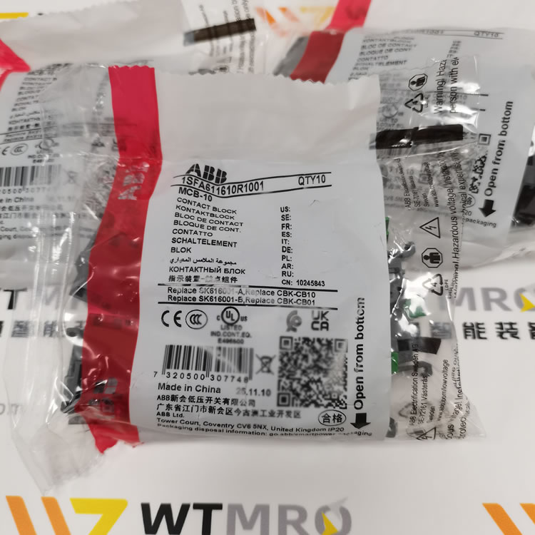 ABB MCB-10 1SFA611610R1001接触模块,是一款优质的单接触接点元件。它属于ABB模块化塑料系列,无支架、无照明且前置安装,设计紧凑灵活。银色(Ag)触点,具备出色的导电性能。