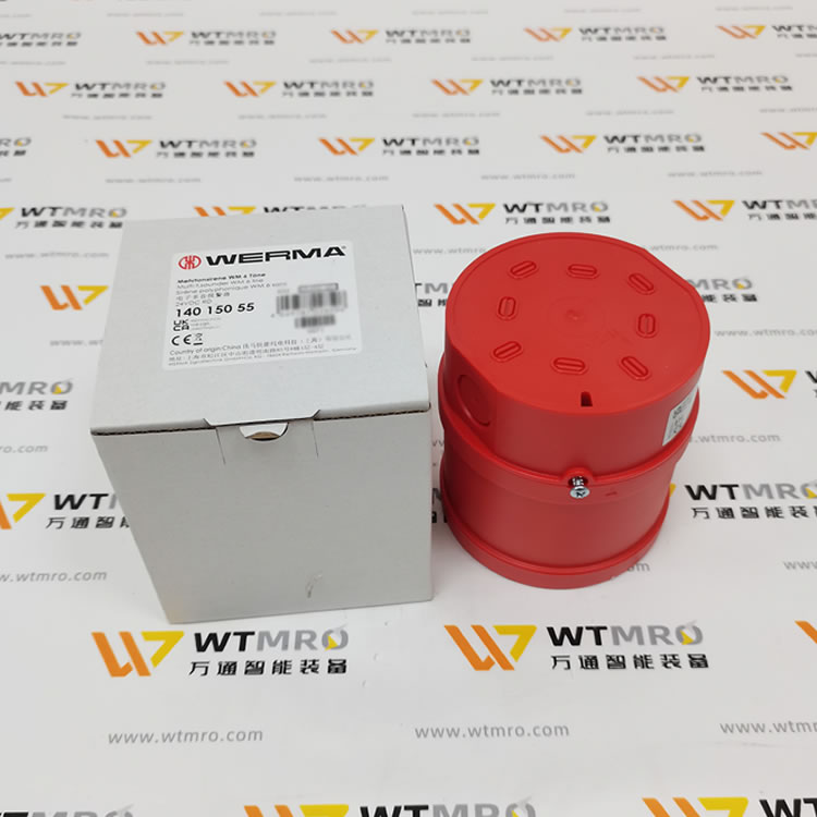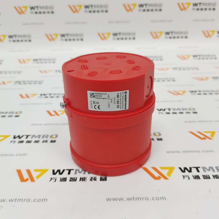 WERMA 140.150.55 电子多音报警器(声道探测仪),采用红色 PC/ABS 阻燃外壳,壁挂式安装设计,防护等级达 IP65,可适应 - 40℃~+70℃宽温严苛工况。